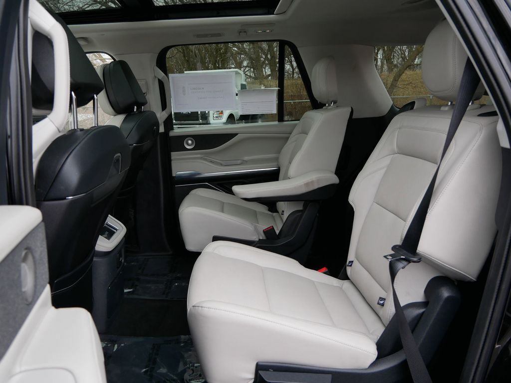 Boasting a striking Black exterior, this Navigator L Reserve is a true head-turner. The 22-inch Dark Tarnished Aluminum wheels and body-color bumpers add to the vehicle's sleek and sophisticated appearance, while the power-folding and heated side mirrors with turn signal indicators provide both style and functionality.