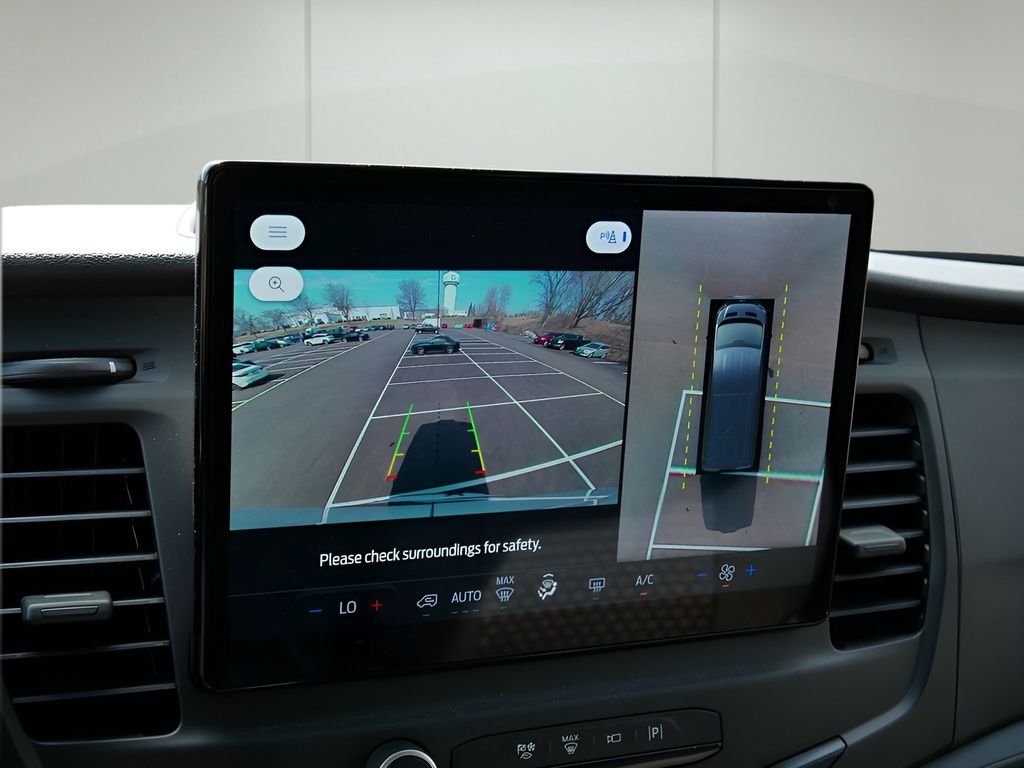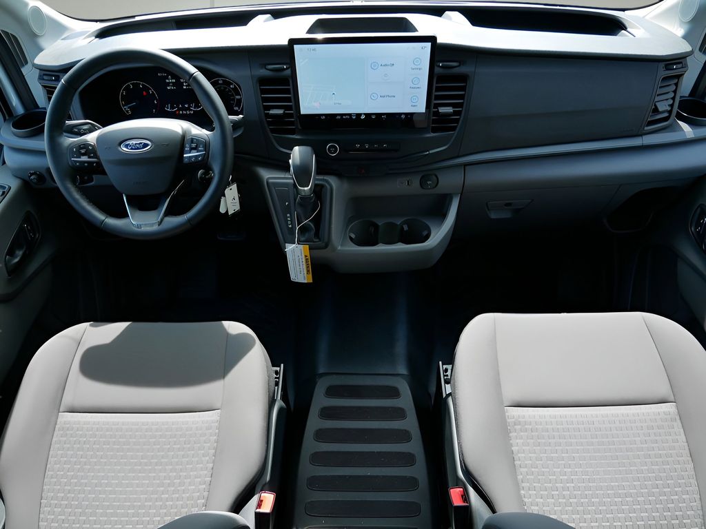 Inside, the Transit-350 offers a spacious and versatile cargo area, with a 50/50 hinged rear door and 253-degree opening for easy loading and unloading. The dark Palazzo Gray cloth swivel bucket seats provide all-day comfort, while the keyless entry keypad and 360-degree camera with split view make maneuvering and accessing the vehicle a breeze.