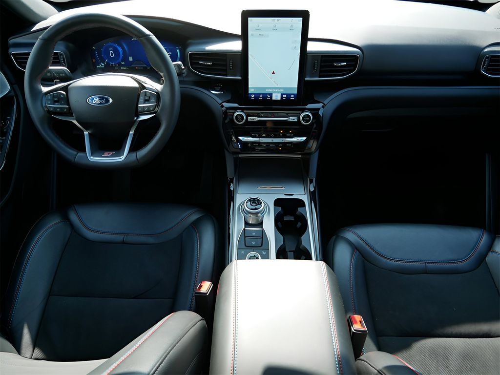 The interior of the Explorer ST is a masterclass in refinement and technology. Indulge in the luxurious leather-wrapped sport seats, which provide exceptional support and comfort, even on the longest drives. The 10.1-inch LCD capacitive touchscreen puts a wealth of connectivity and entertainment features at your fingertips, including the advanced SYNC 3 system, Apple CarPlay, and Android Auto integration.